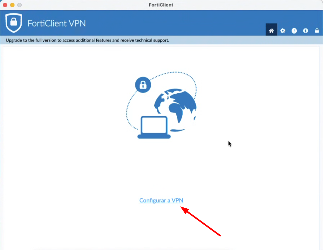Clique no ícone da página inicial (Home) e depois clique em "Configurar a VPN";