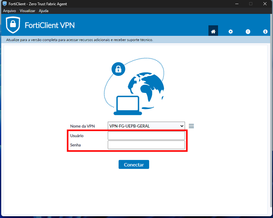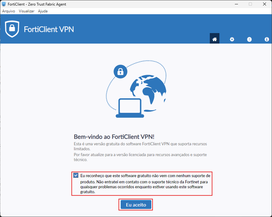Se você for usuário Windows, clique aqui para baixar o instalador do FortiClient VPN e execute-o em seguida. (obs.: Estamos trabalhando nas configurações para usuários Linux e Mac)