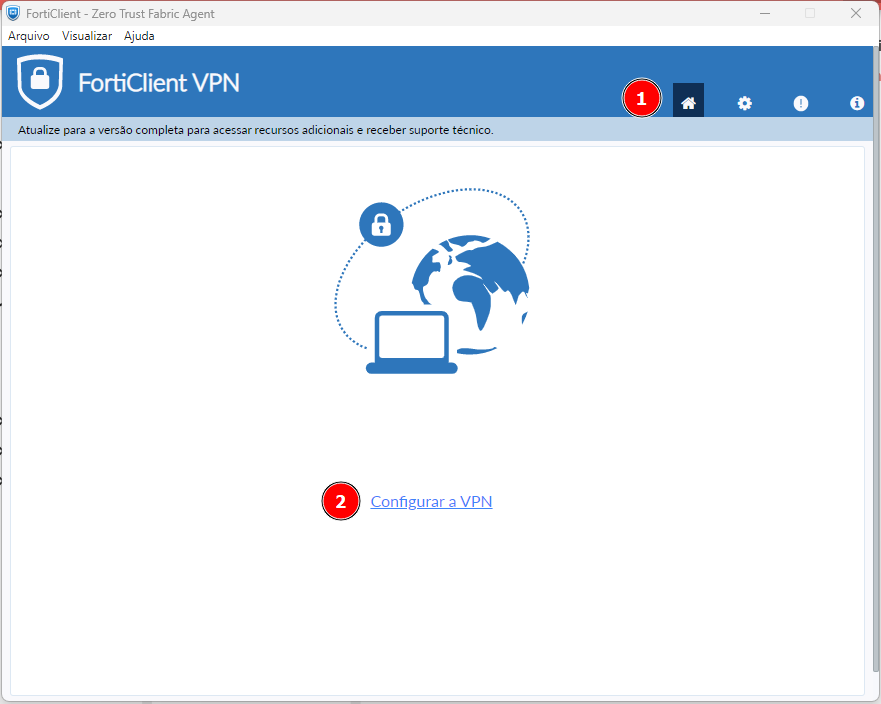 Clique no ícone da página inicial (Home) e depois clique em "Configurar a VPN".