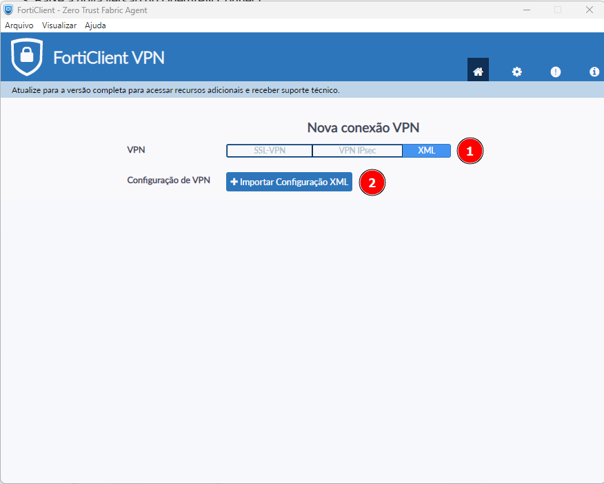 Baixe o arquivo de configuração do FortiClient VPN clicando aqui.