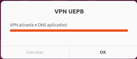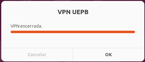 Para desativar a VPN basta executar o arquivo VPN-UEPB conforme exemplificado no passo 4. Após a desativação da conexão VPN o aplicativo irá exibir uma mensagem informando que a VPN foi encerrada.
